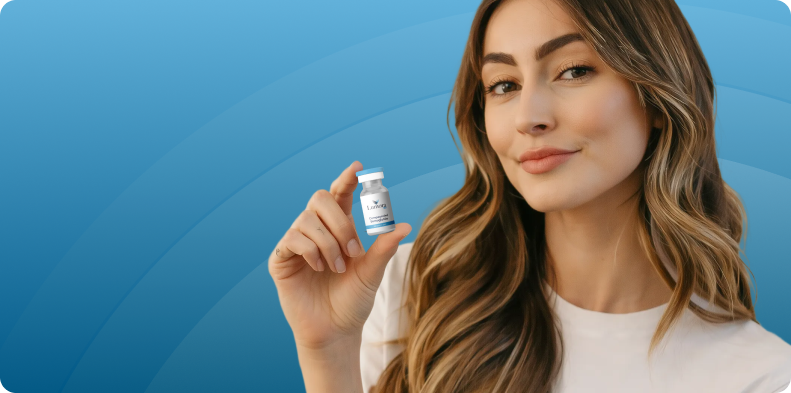 LumoraMD is not a compounding pharmacy. Medications are prescribed through LumoraMD and then compounded and dispensed by licensed partner pharmacies pursuant to a valid prescription. Actual labeling, packaging, and vial appearance will vary, and will not match any images shown. Images shown are for illustration purposes only.